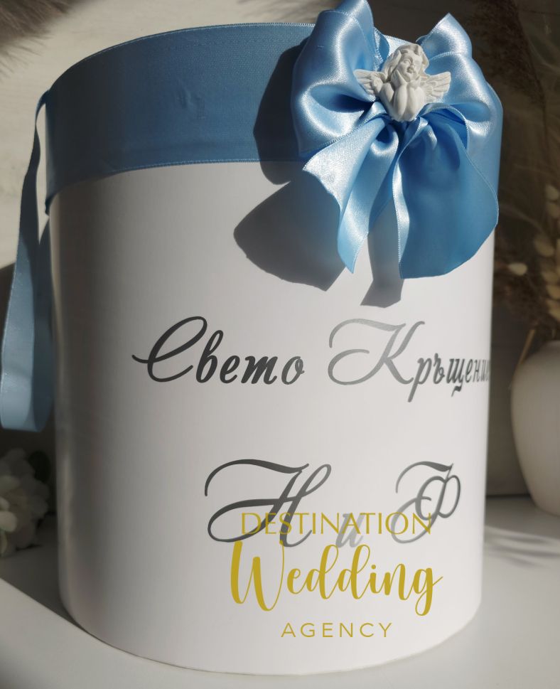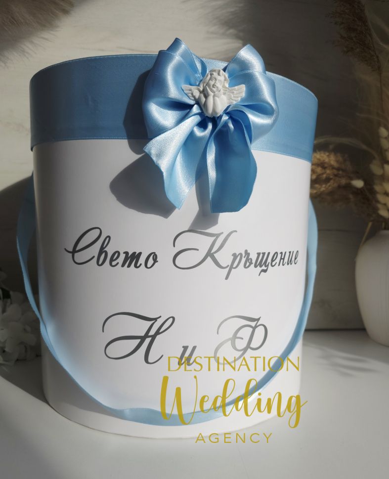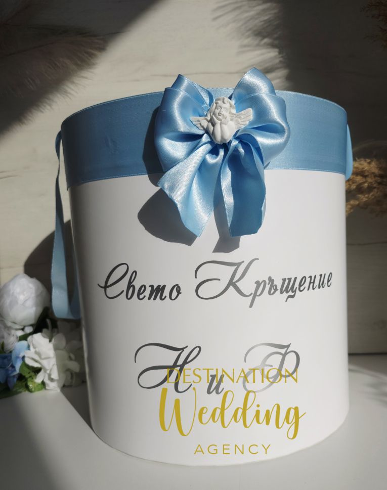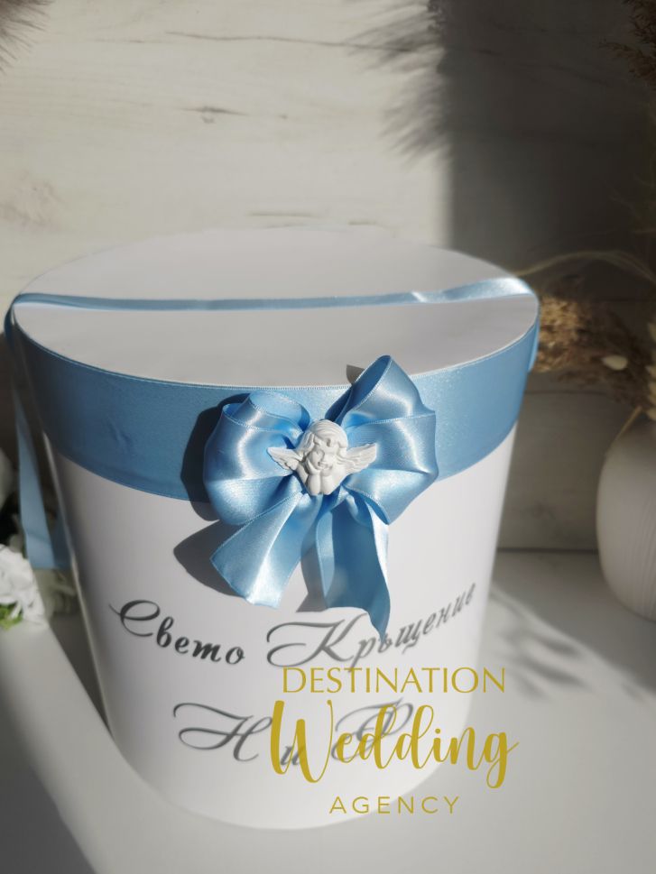 Стилна и изискана кутия за събиране на парични подаръци, специално изработена за тържеството по Свето Кръщение.