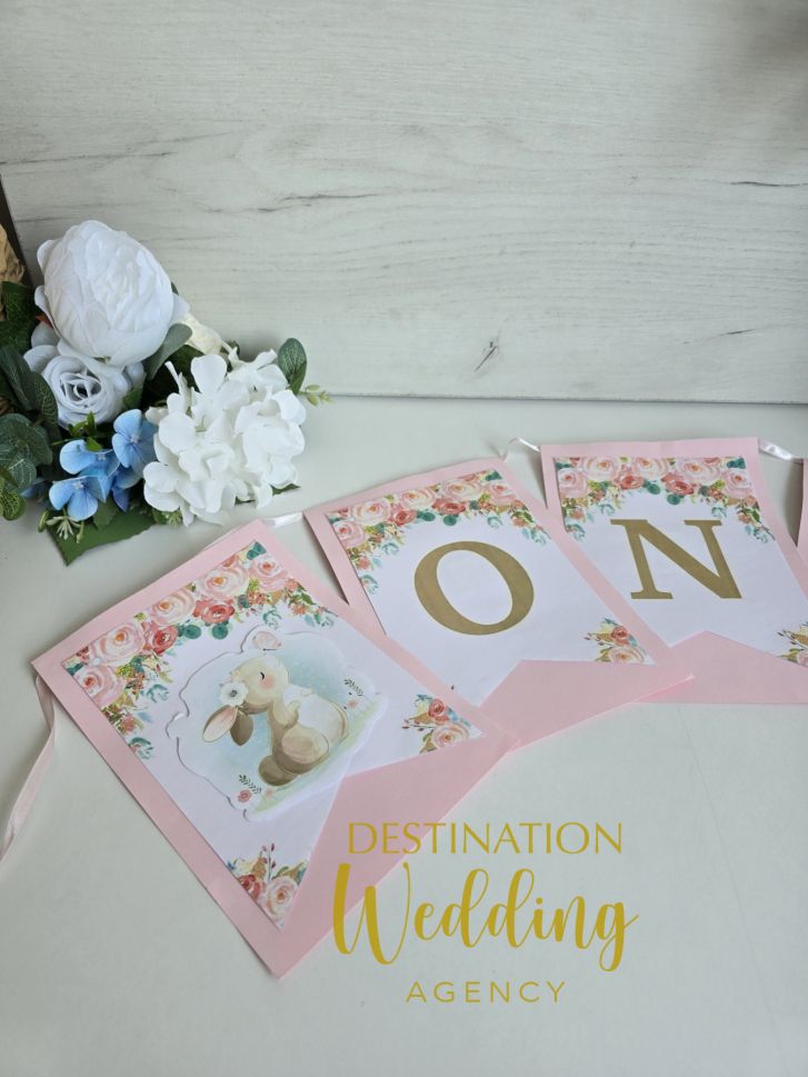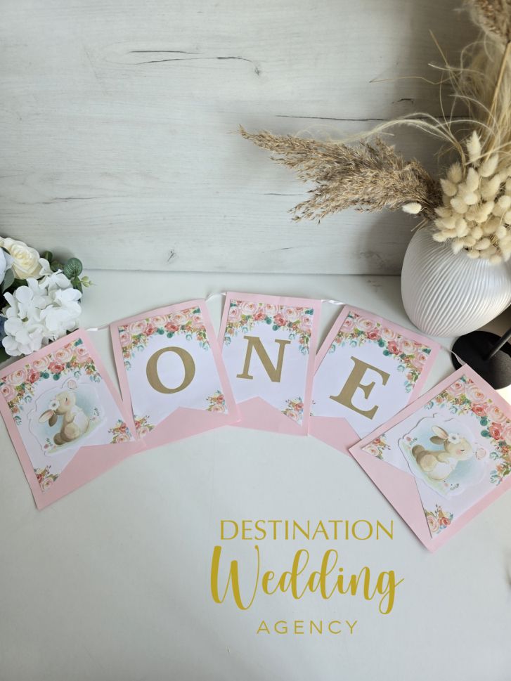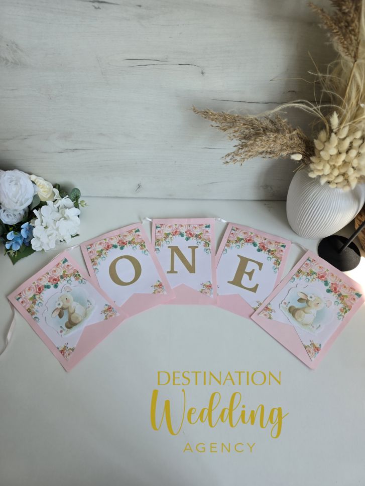 🎀 Банер за рожден ден „ONE“ – Зайче в розово