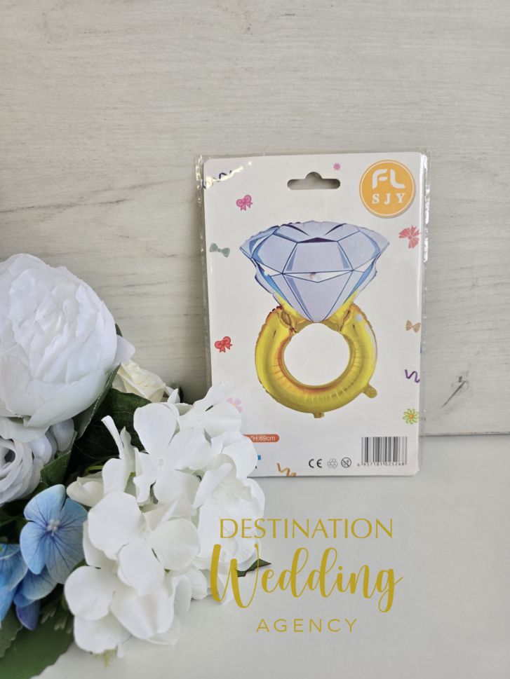 Фолиев балон под формата на пръстен, е чудесно допълнение към украсата в сватбения ден или моминско парти.